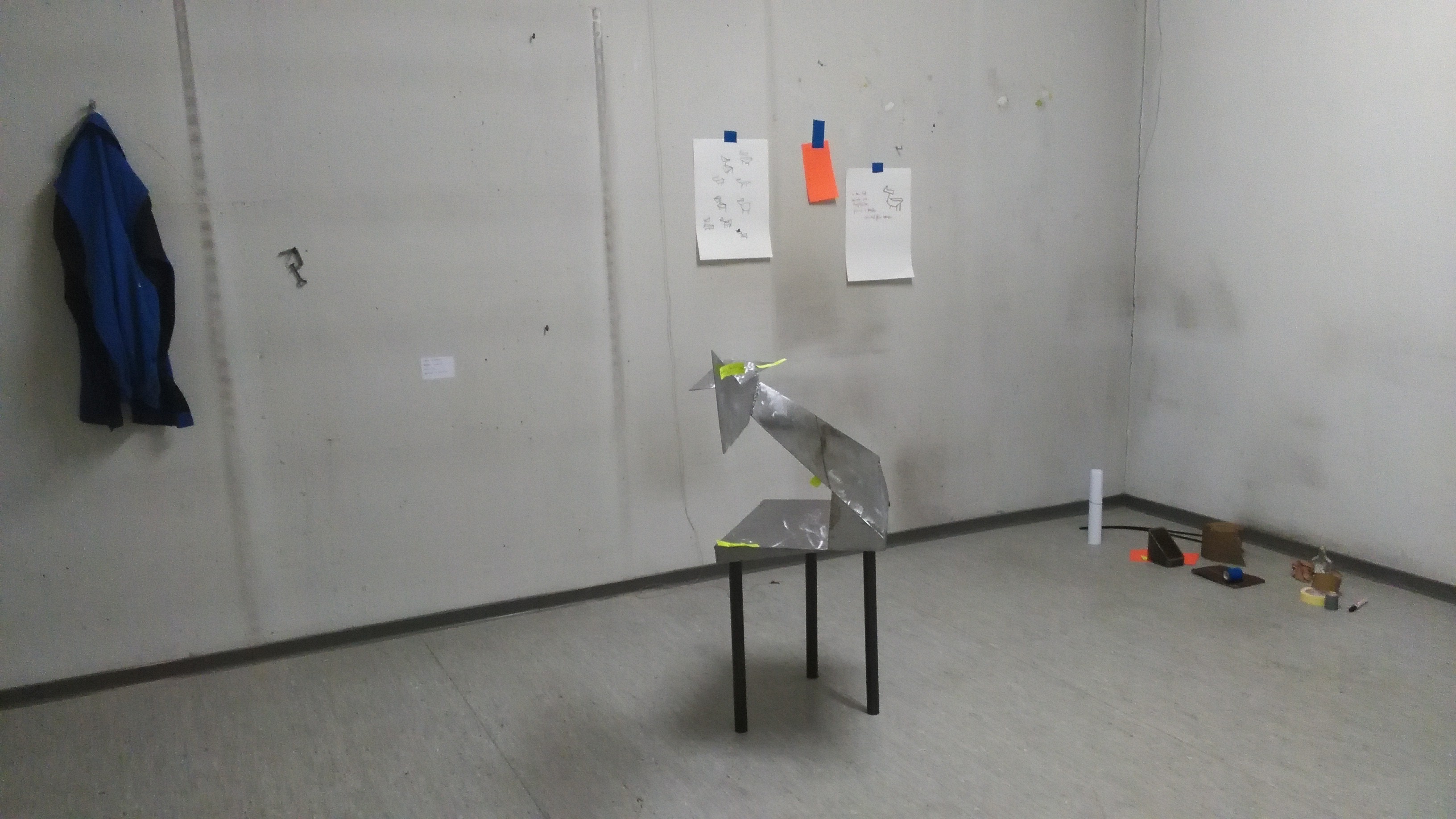 2014 « bin gleich wieder da » Sommerausstellung ABK Stuttgart Installation, Teile eines Prototyp fu?r eine Erdbatterie, Noten, Skizzen